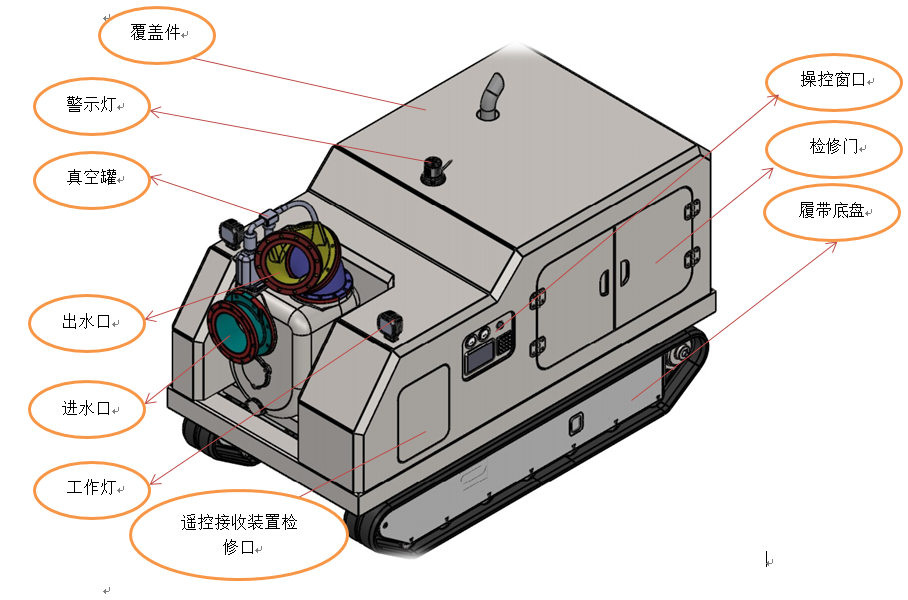在使用前提前把發(fā)動機里面的柴油、機油、冷卻液加到位,加好后把進出水管管道連接好、然后把電瓶電源打開→總電源開關打開→遙控器電源開關打開即可采用遙控器啟動柴油機運行→柴油機啟動運行之后可以通過遙控器上面的按鍵**履帶車各個角度方向的行走→需要抽水打開遙控器上面的真空吸氣閥開關及液壓離合器開關即可、真空泵具有自動啟停功能當自吸泵出水后真空泵會自動停止。